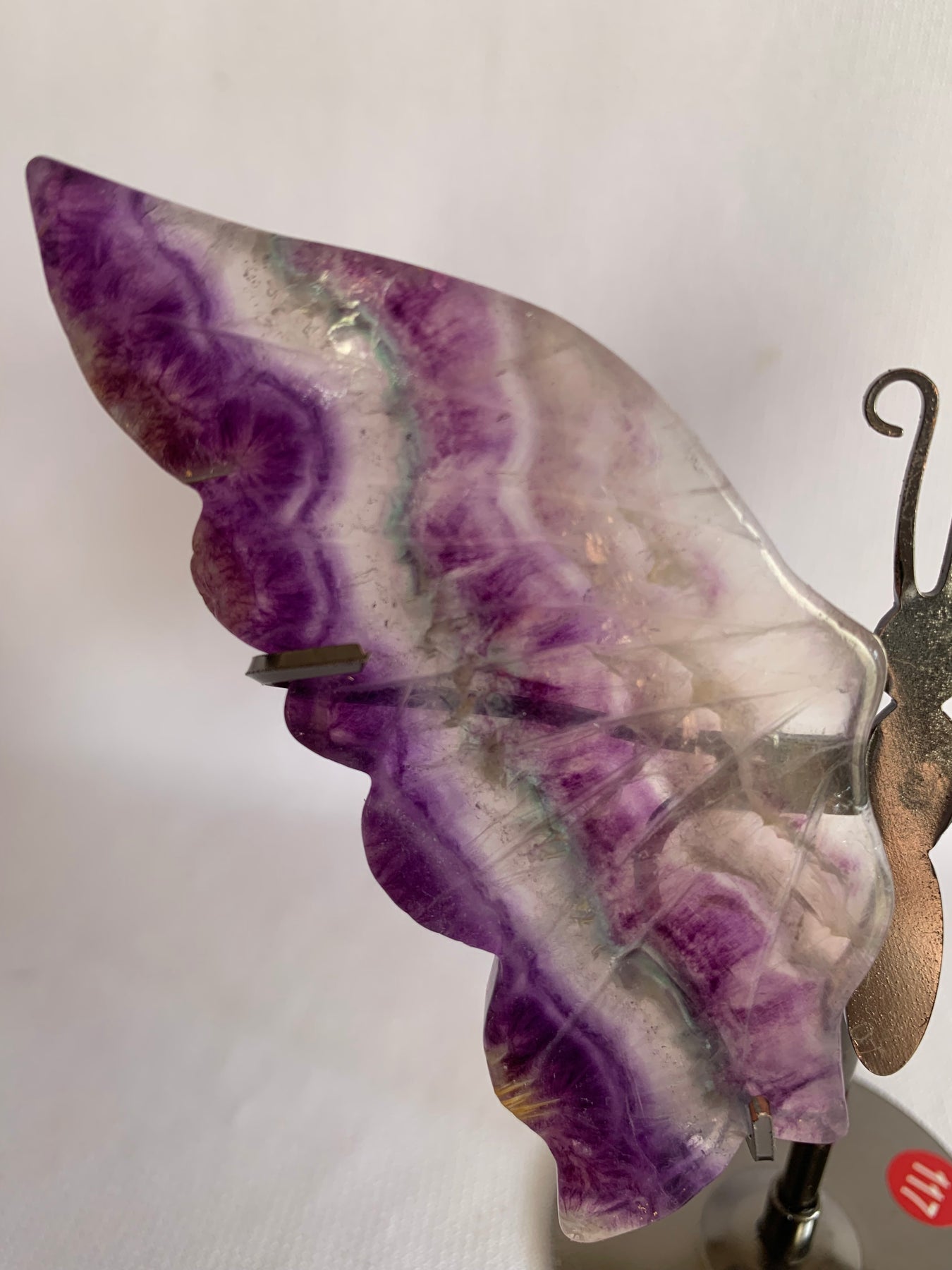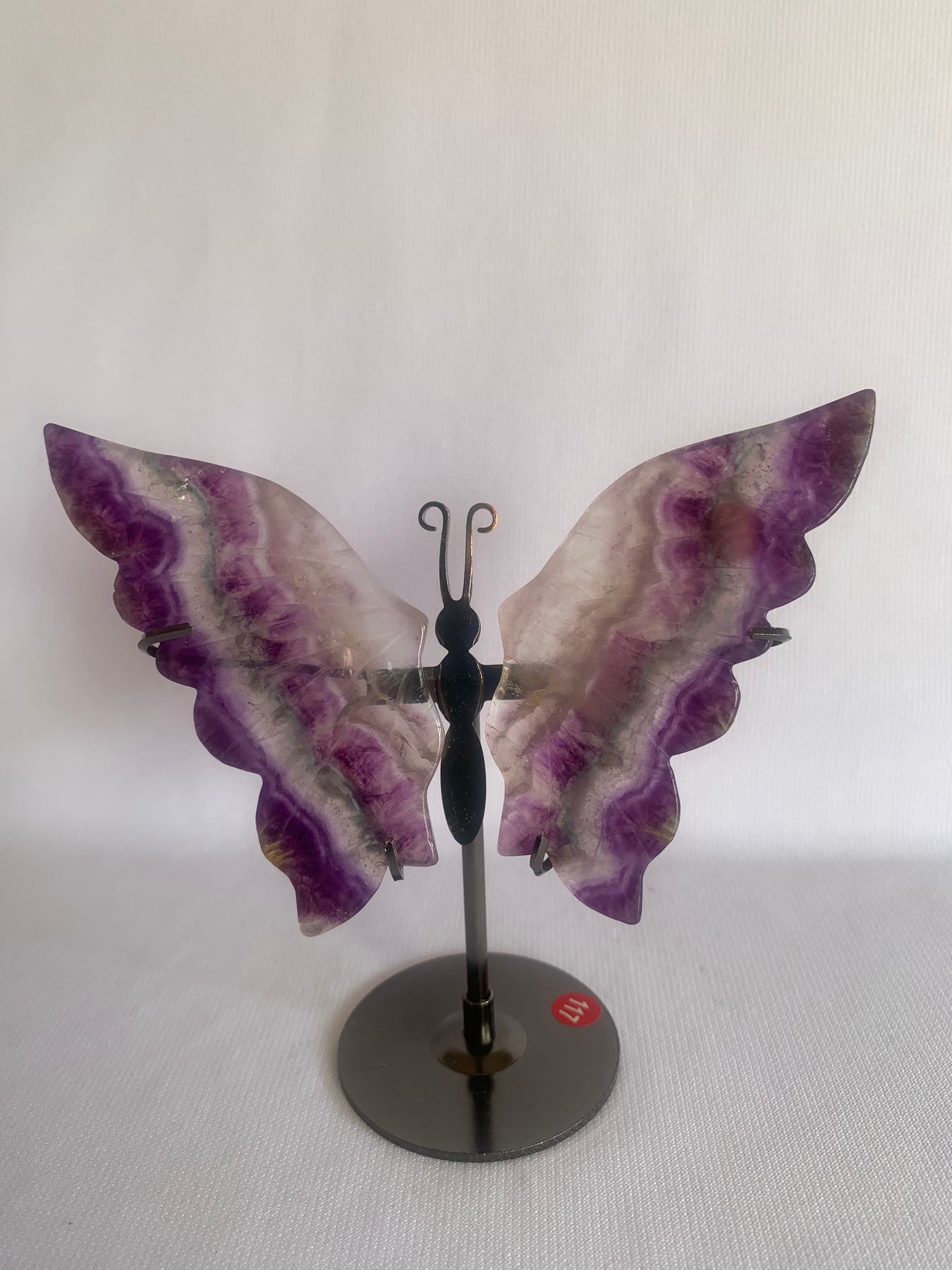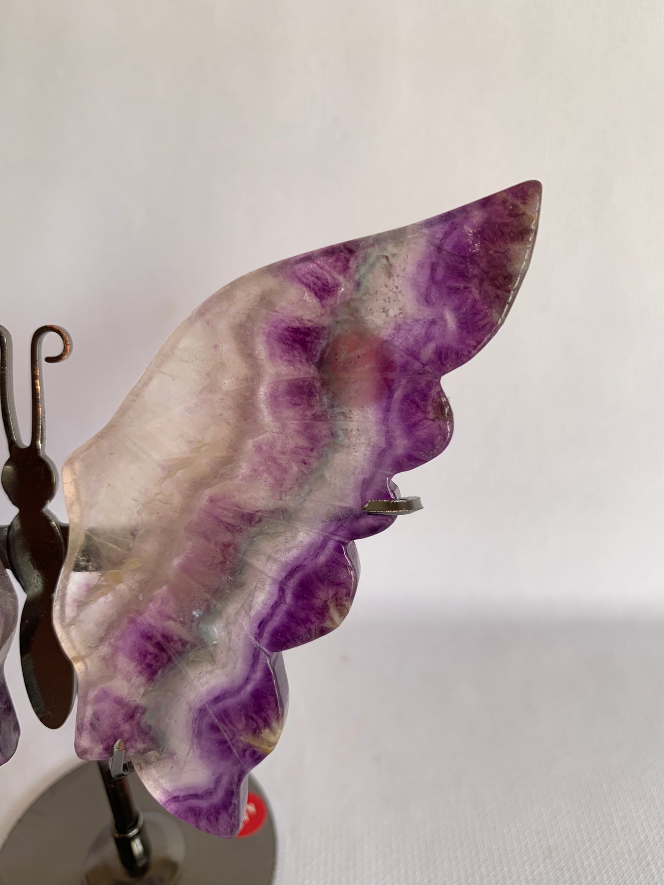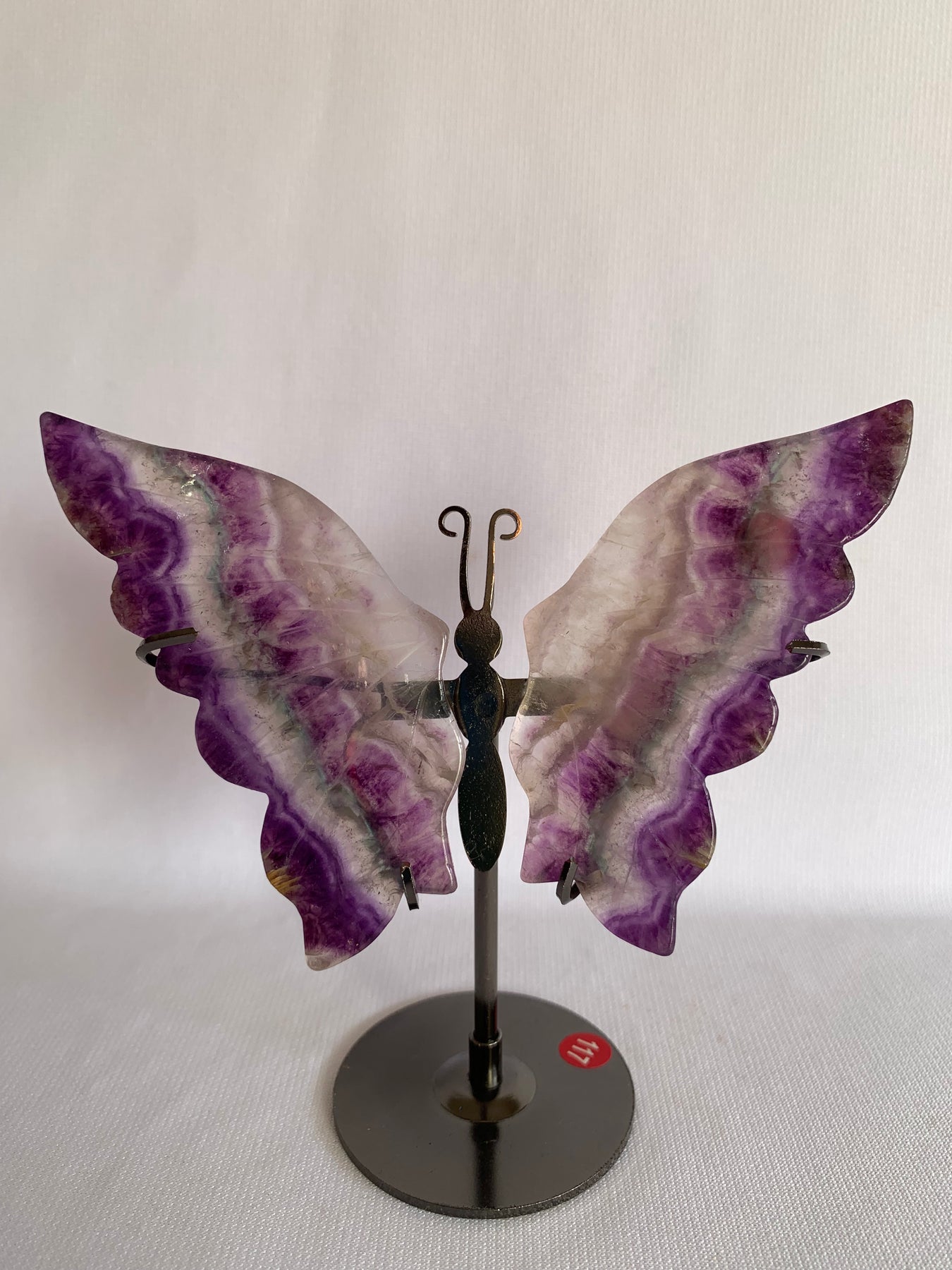 This beautifully carved Fluorite butterfly displays nature’s artistry through flowing bands of violet, lavender, and translucent crystal layers. Each wing reveals the natural patterns of fluorite, creating a piece that feels both delicate and powerful.