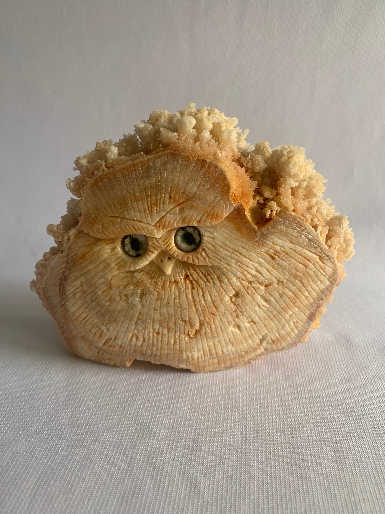 This one-of-a-kind owl carving is a fusion of two natural worlds:
