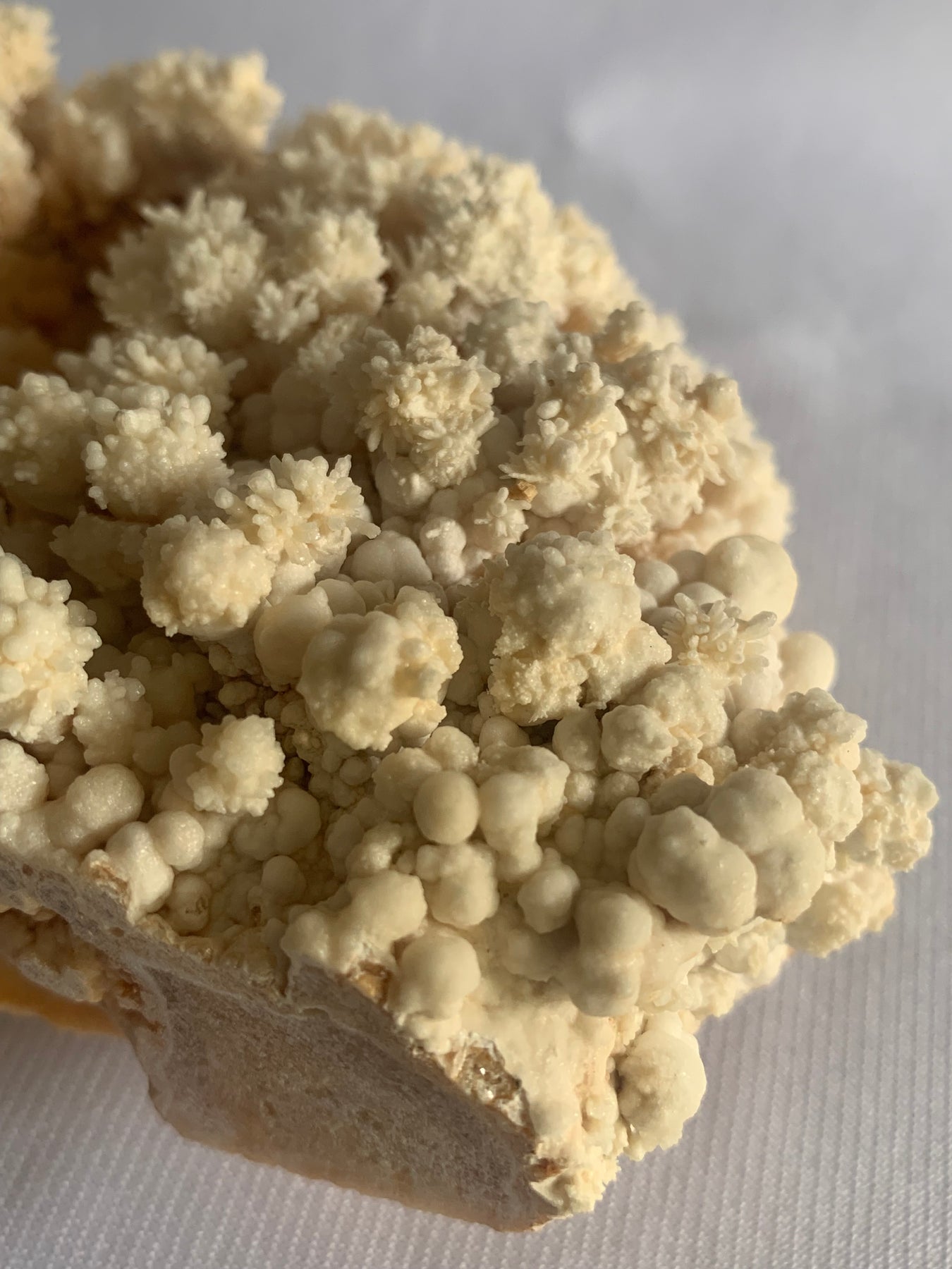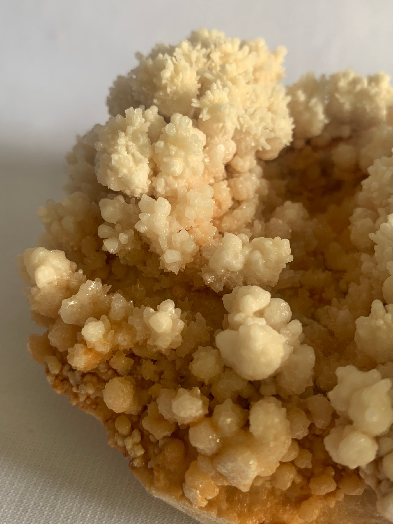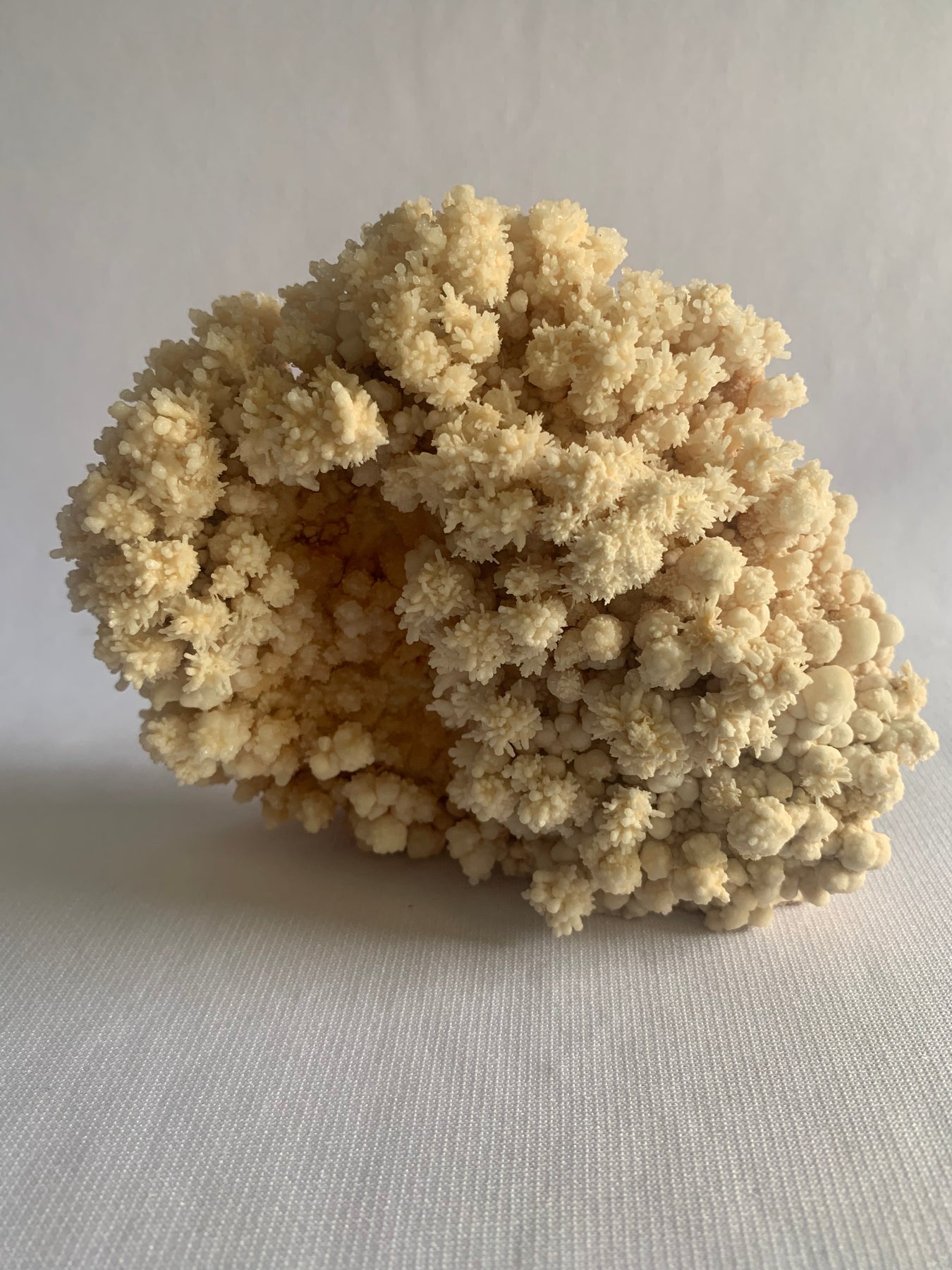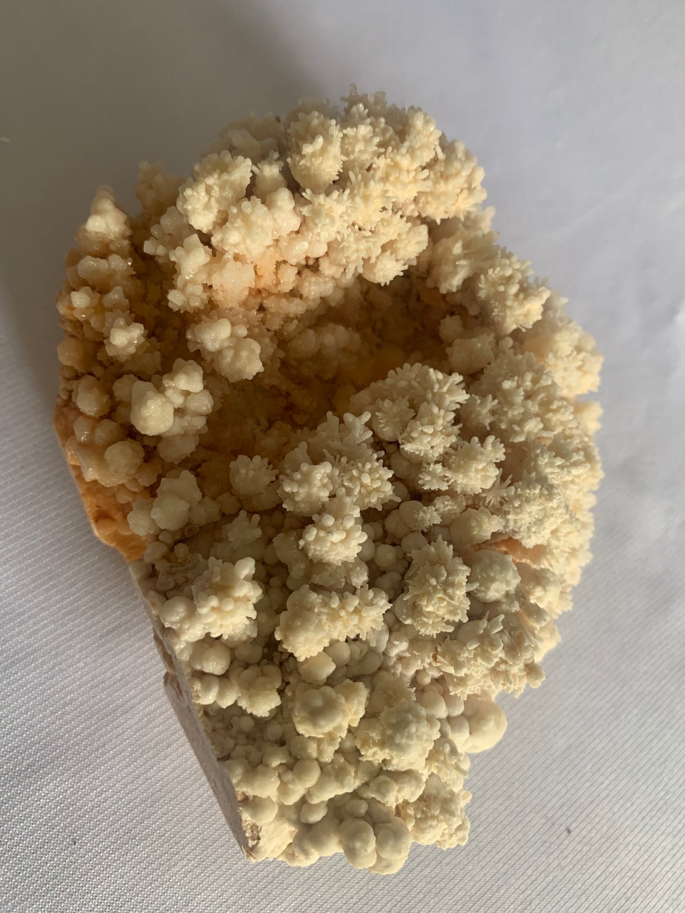 Stalactite crystal formation on the back — formed over thousands of years within a cave environment.