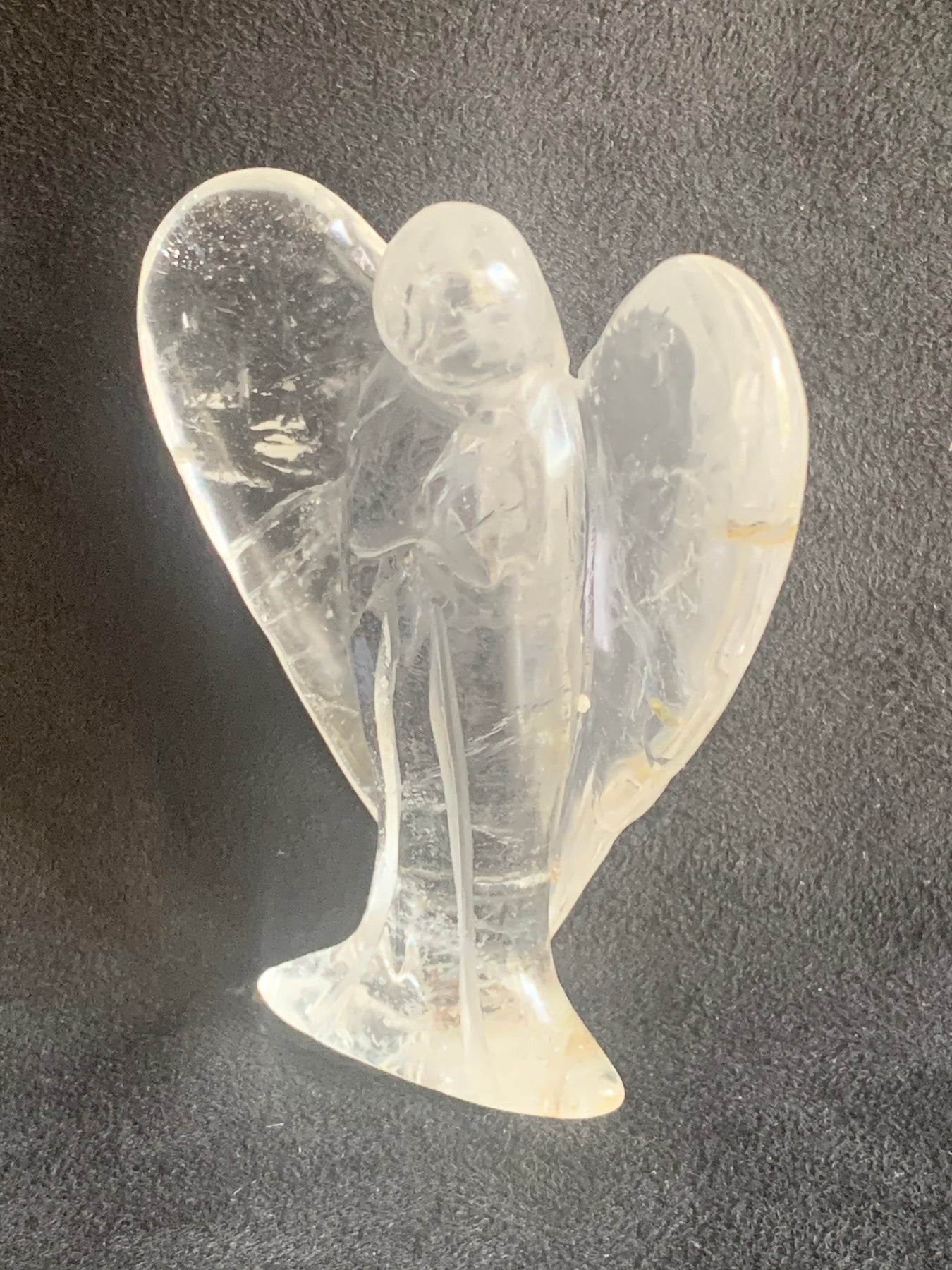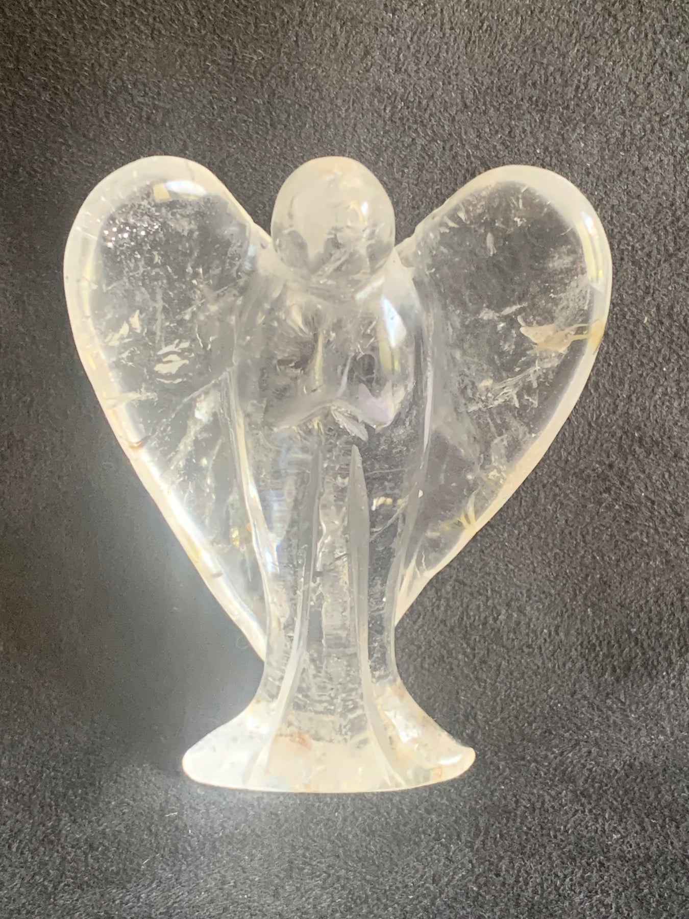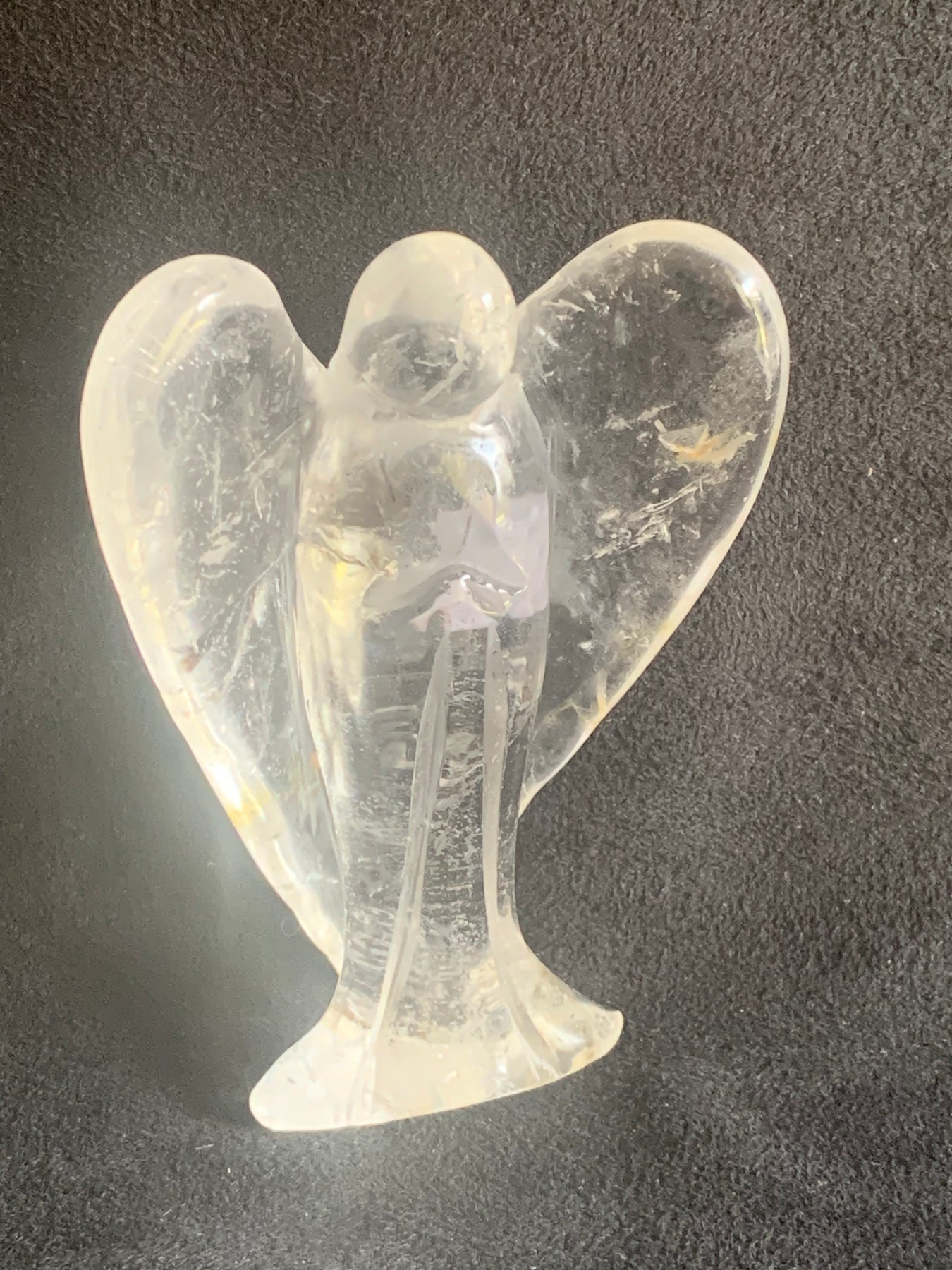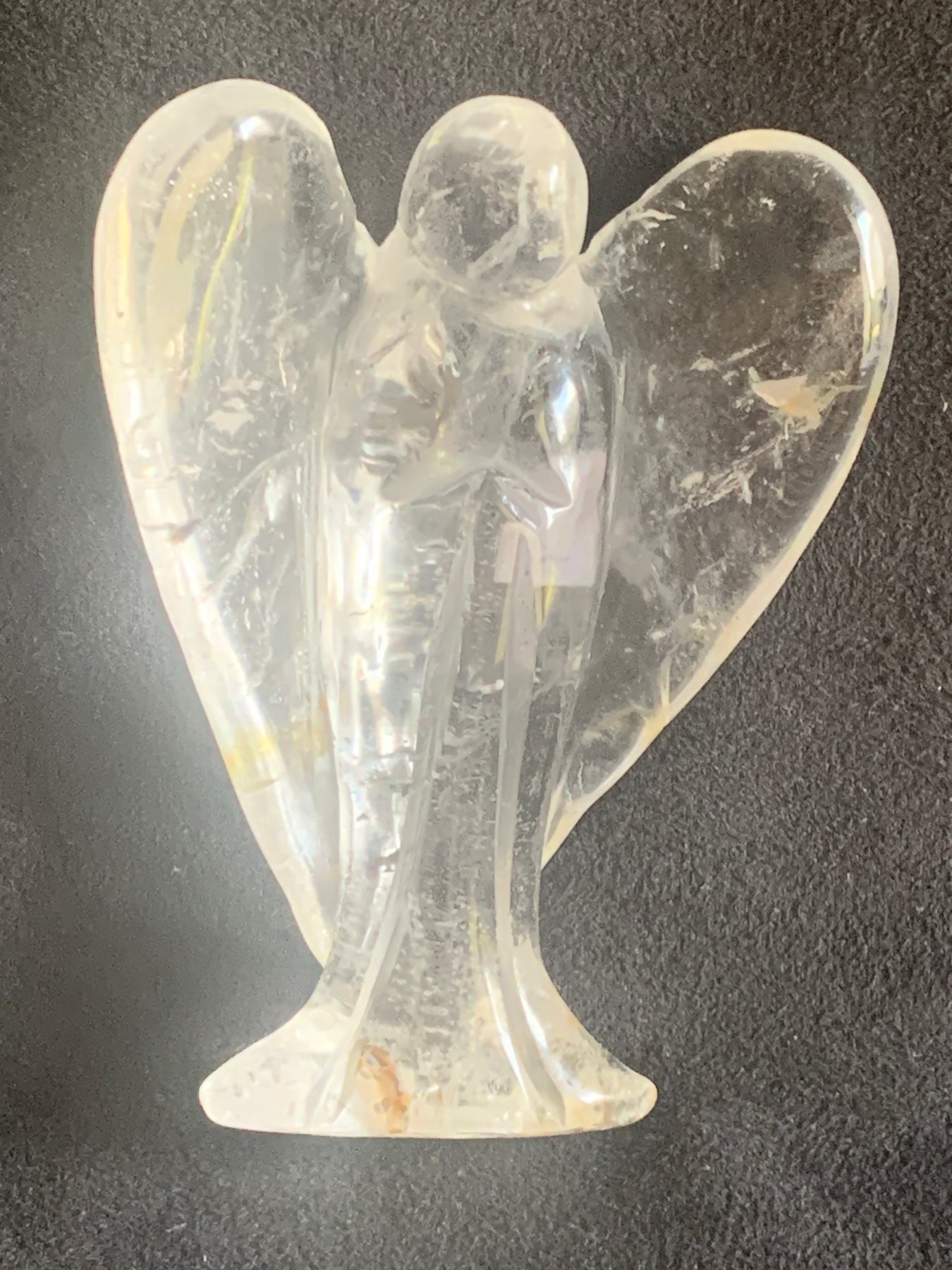No two angels are alike — each one carries unique natural inclusions and light-reflecting rainbows, making it a one-of-a-kind guardian for your home or sacred space.