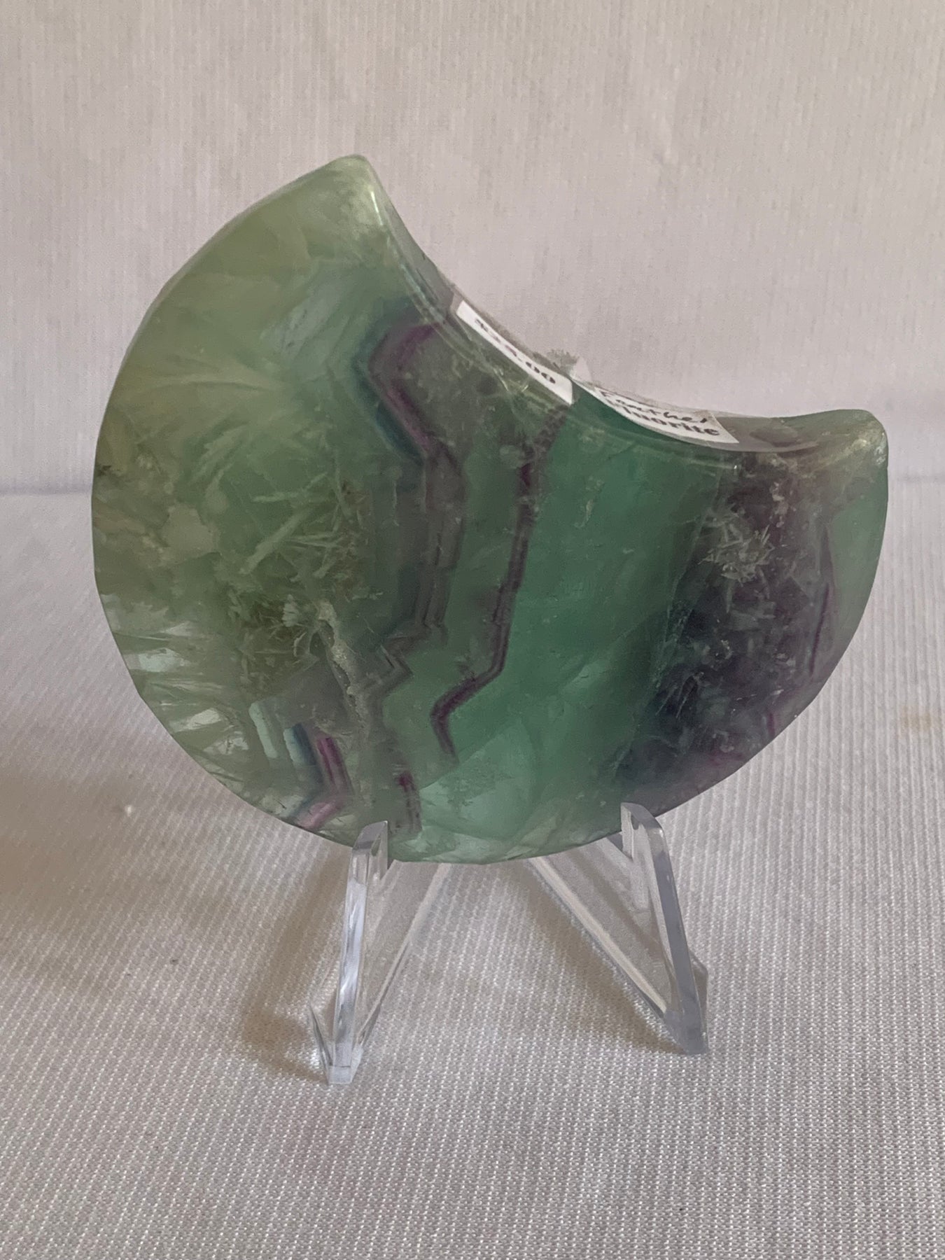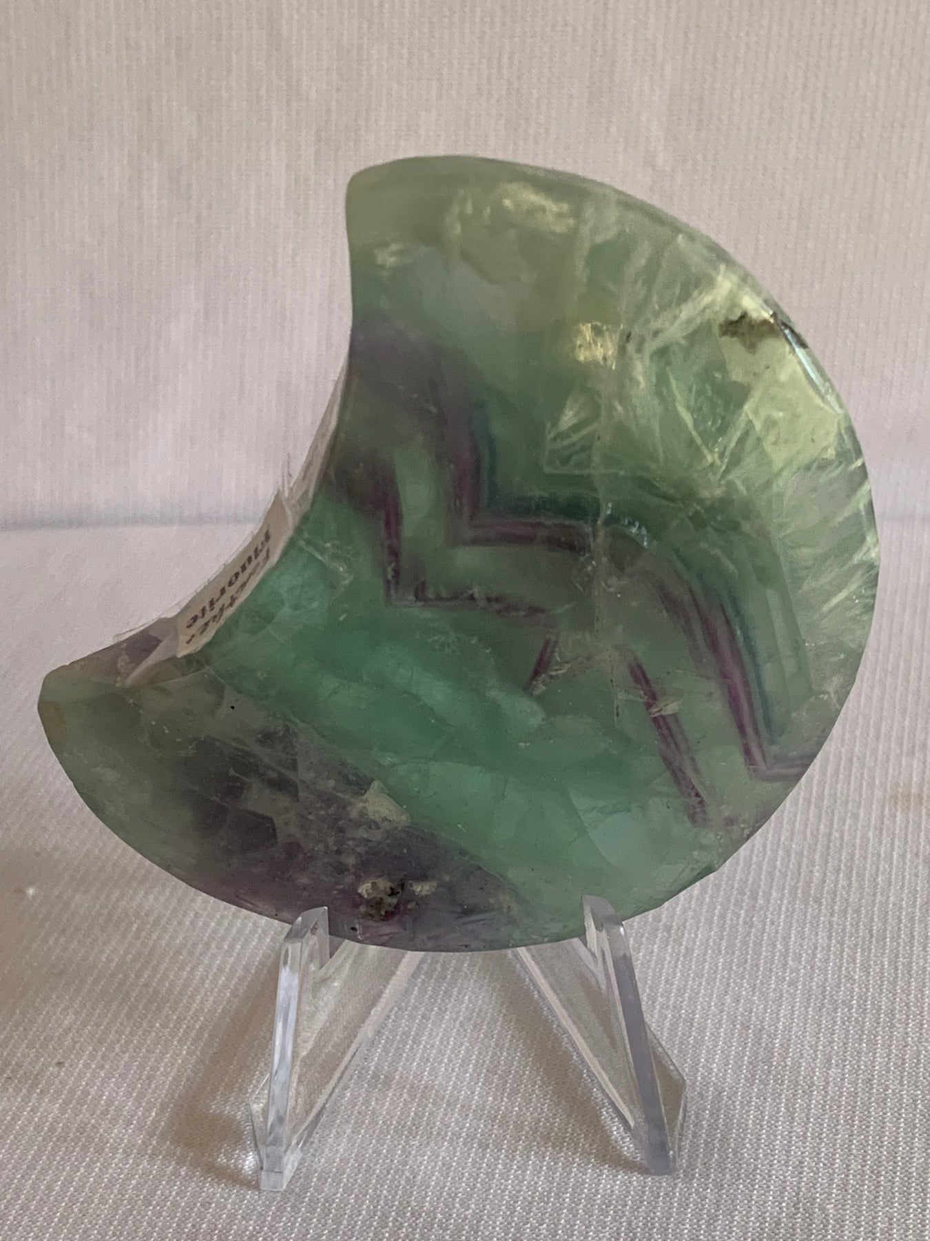 Polished Green & Purple Fluorite Crescent for Clarity, Flow & Spiritual Insight