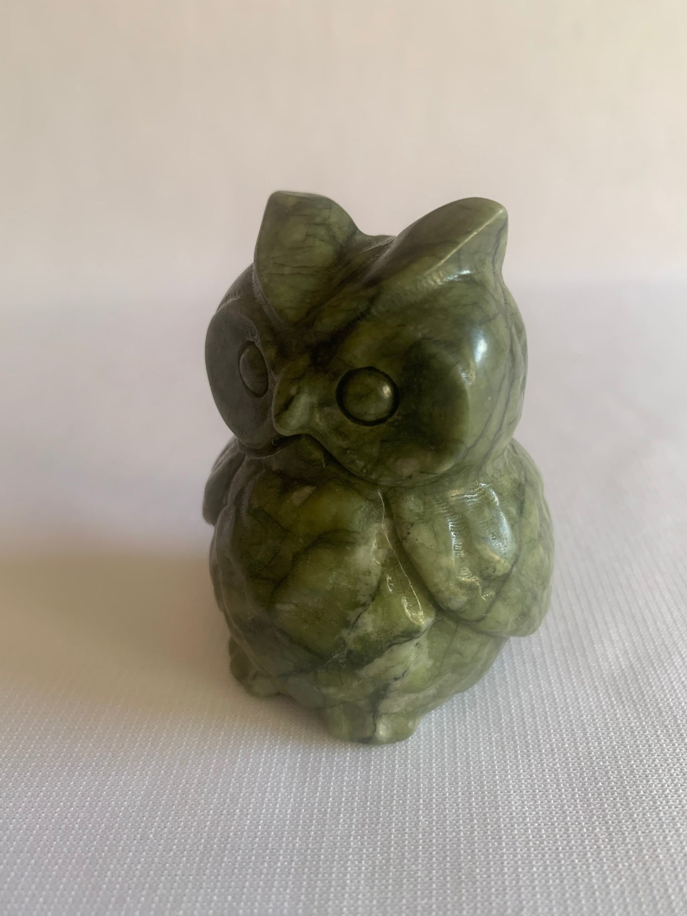 Invite grounding, protection, and wise spiritual insight into your space with this beautifully carved Serpentine Owl.