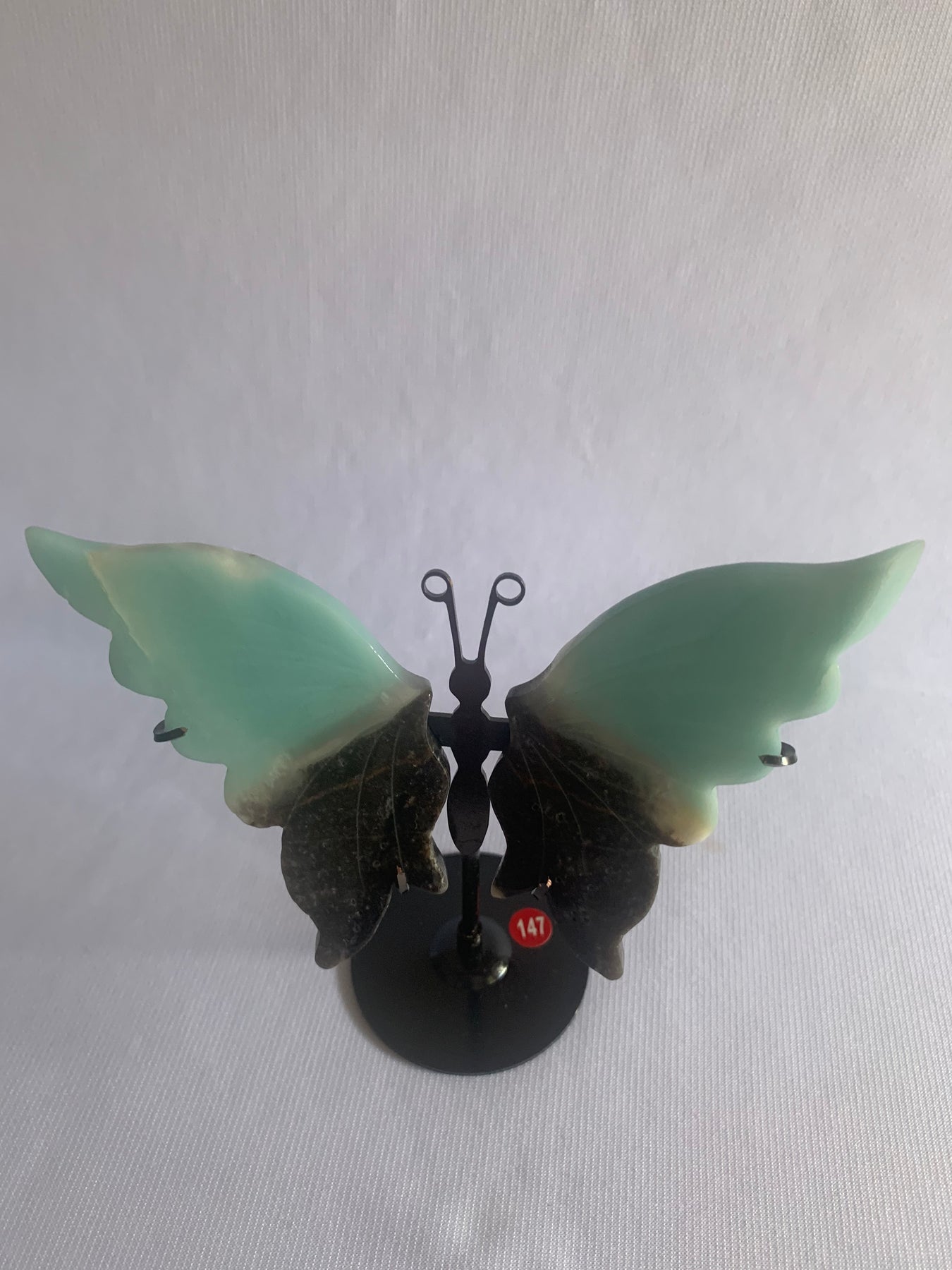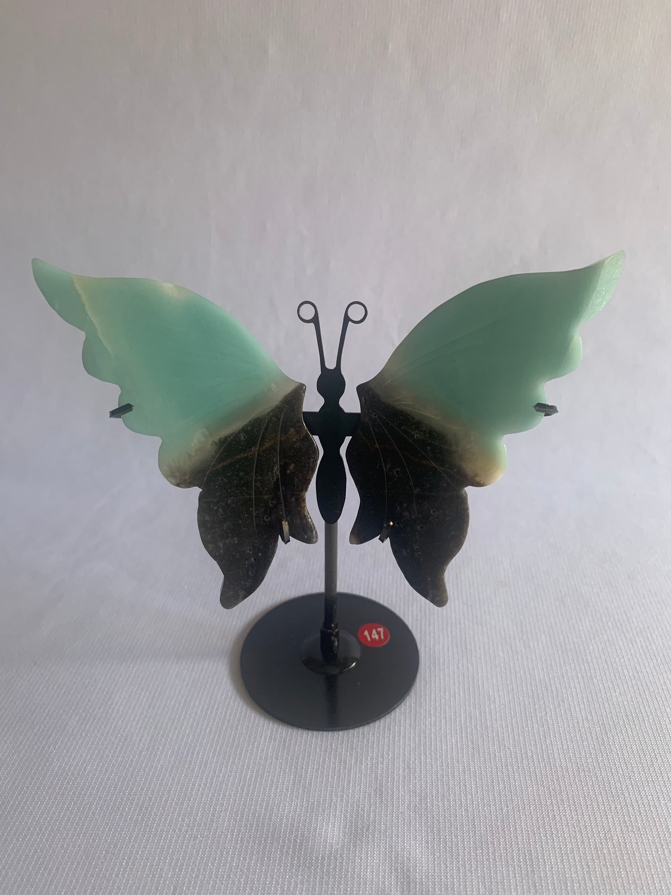 Caribbean Calcite is cherished for its soothing aqua and sea-foam tones, often associated with calm, emotional clarity, and heart-centered awareness. The butterfly form amplifies these qualities, representing growth through change and the quiet strength found in transformation.