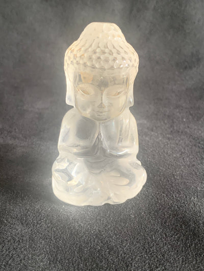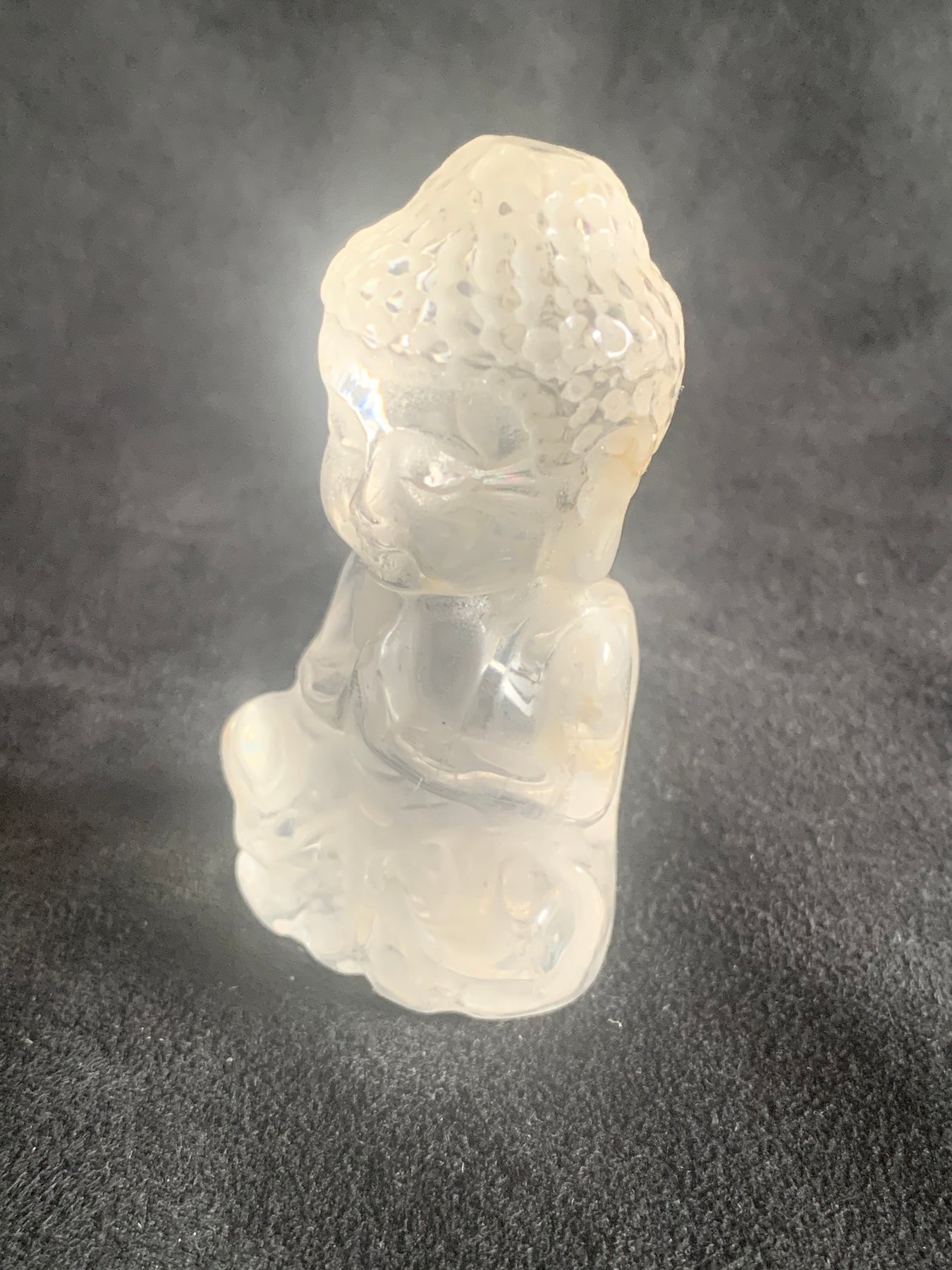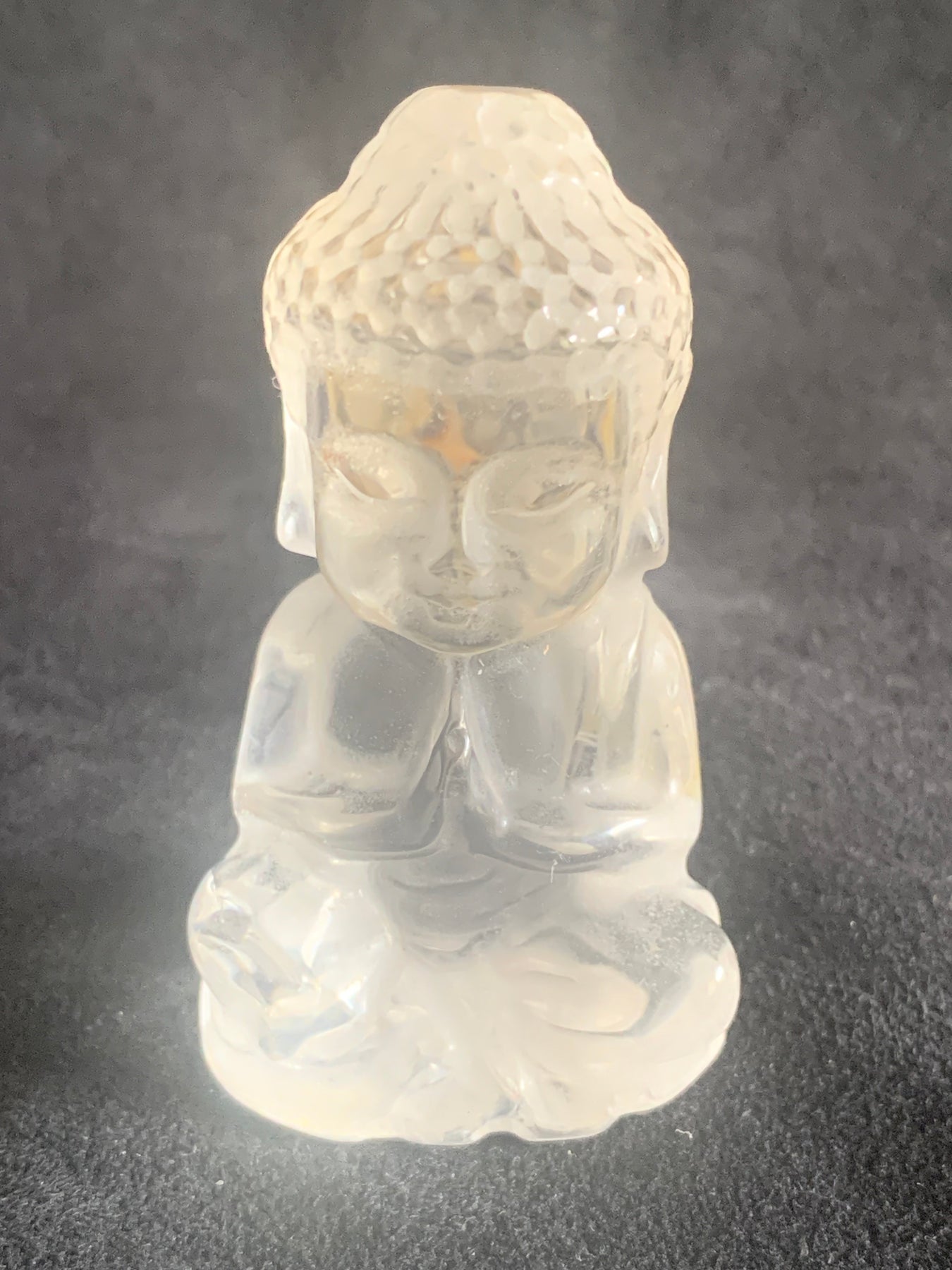 Clear Quartz amplifies intention, purifies energy, and enhances focus — making this Buddha carving an ideal companion for meditation spaces, altars, healing rooms, and anyone seeking a calming spiritual anchor.