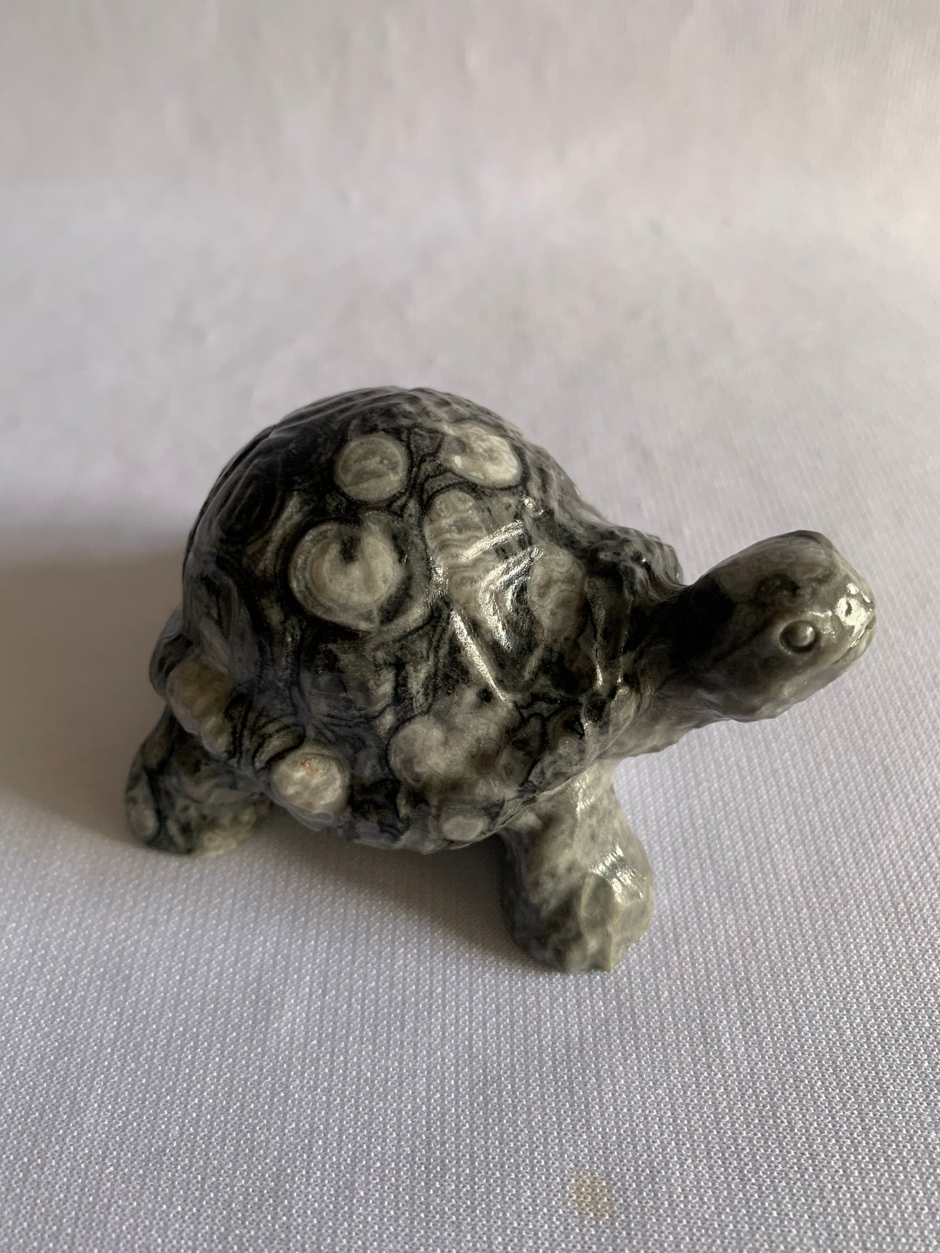 This beautifully carved turtle is crafted from genuine crinoid fossil stone — a prehistoric marine fossil formed over hundreds of millions of years.