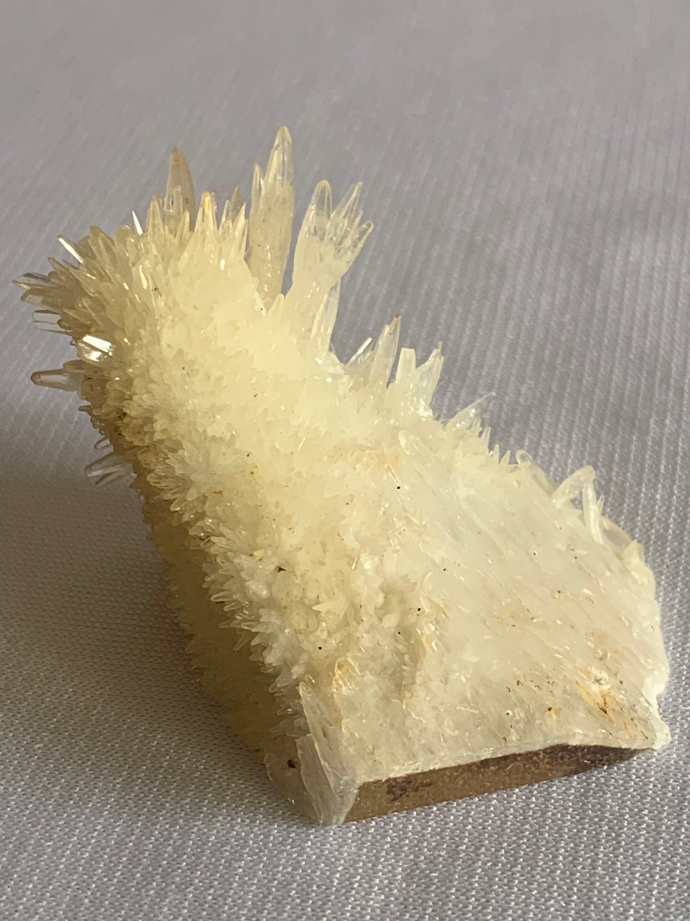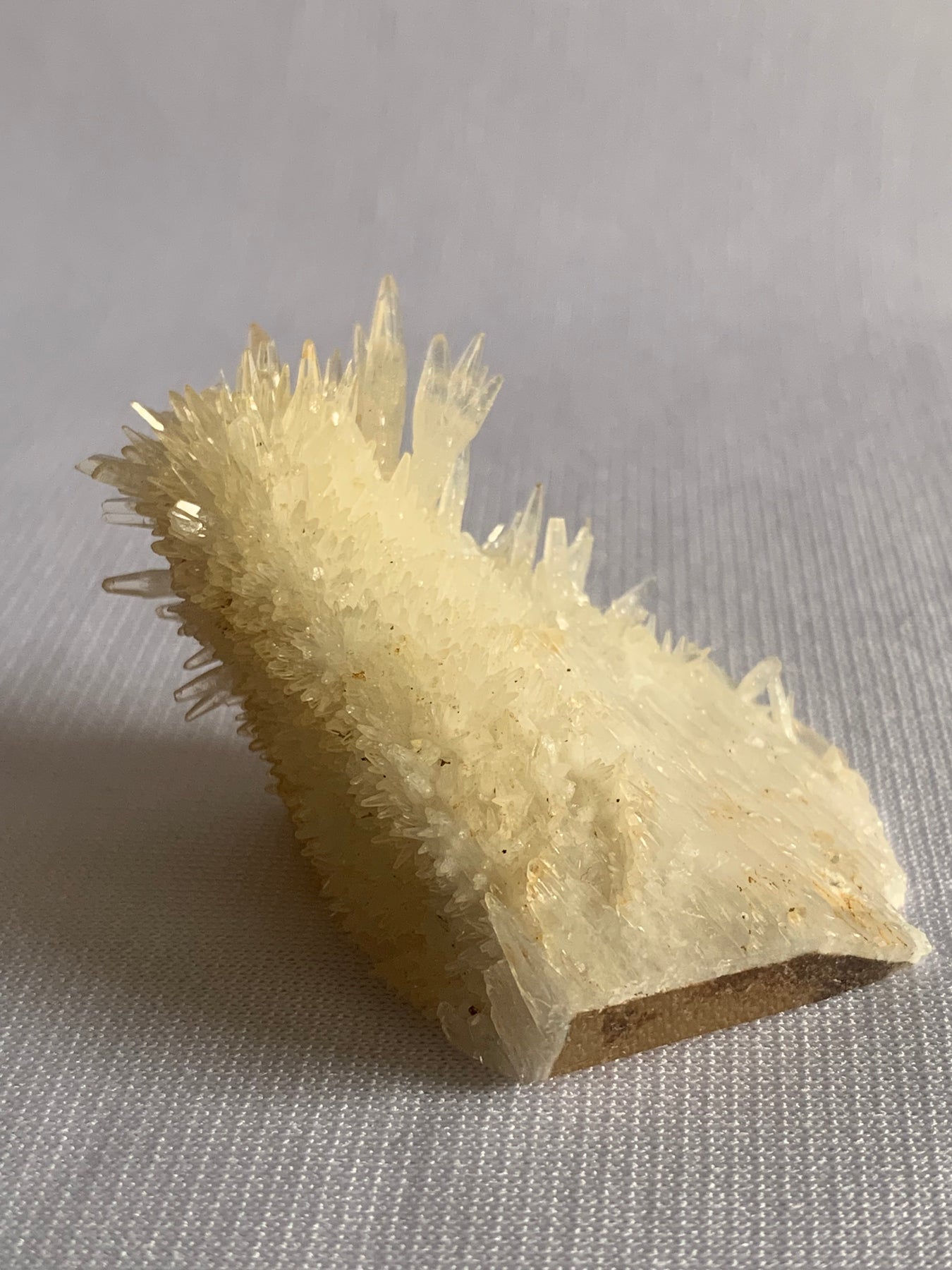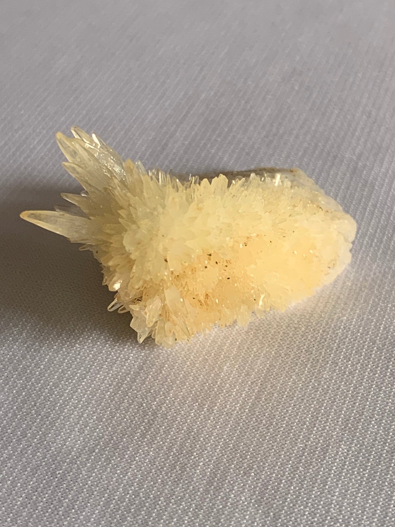 Radiating with fine, delicate crystal points, this Needle Calcite cluster is a natural amplifier of light and energy. Its luminous golden-white formation carries an uplifting vibration that clears mental fog, helps release emotional blockages, and encourages higher spiritual awareness.