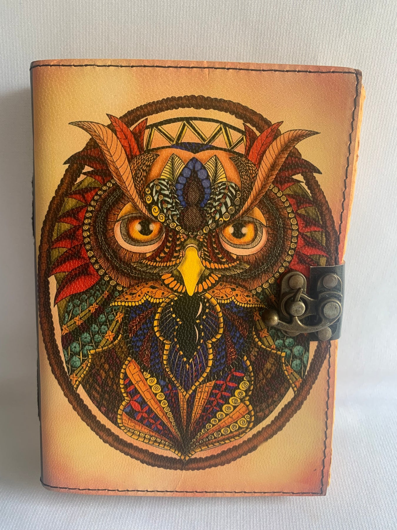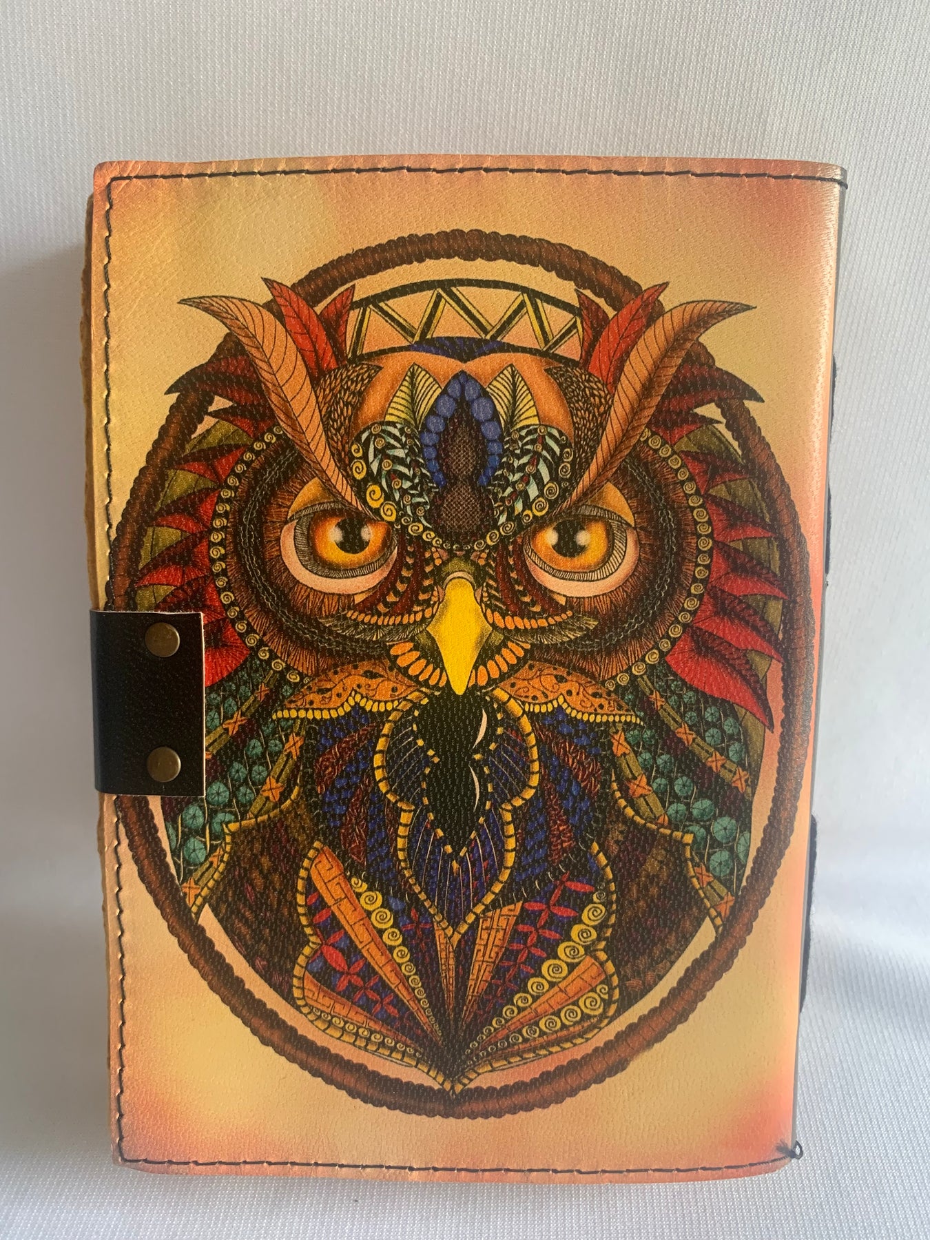 • Vegan Leather Cover – soft, durable, and cruelty-free with vivid owl artwork.